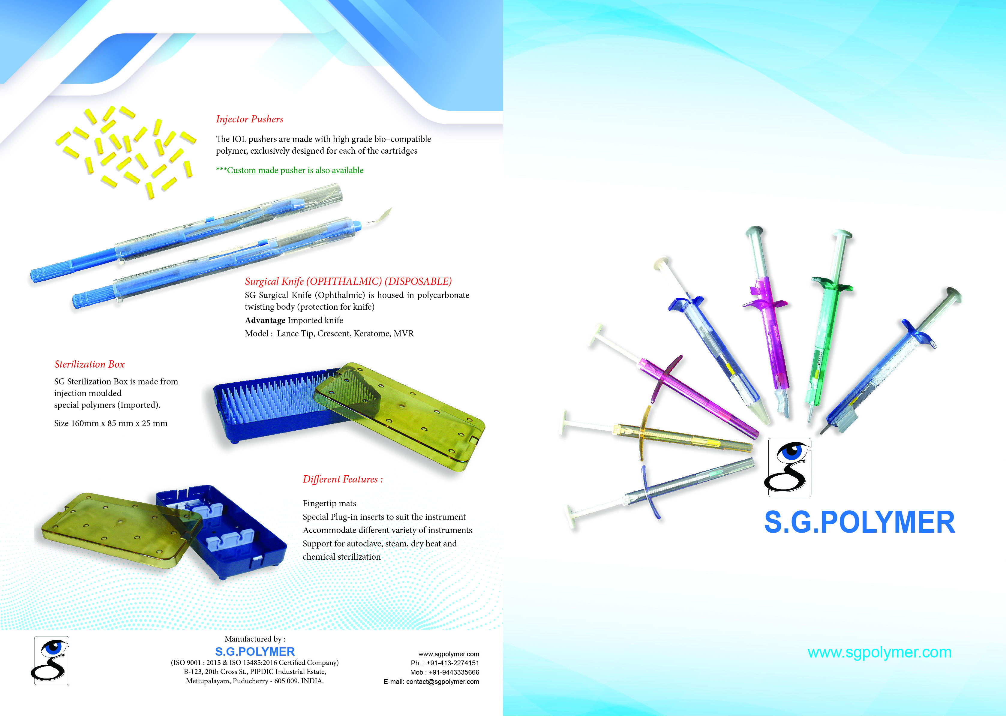 We are based Pudhucherry, India and SG Polymer researches and innovates to offer products that are ever safer and more practical to use, thus facilitating the practitioner’s surgical operations.